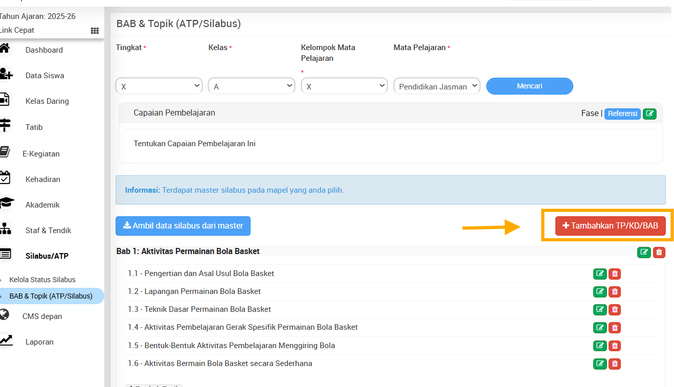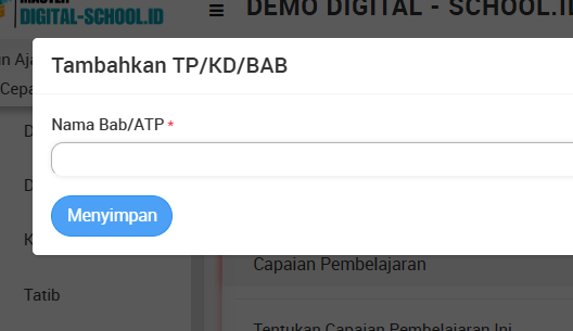 Klik tambahkan TP/KD/BAB, untuk menambhakan Bab/ATP seperti gambar berikut