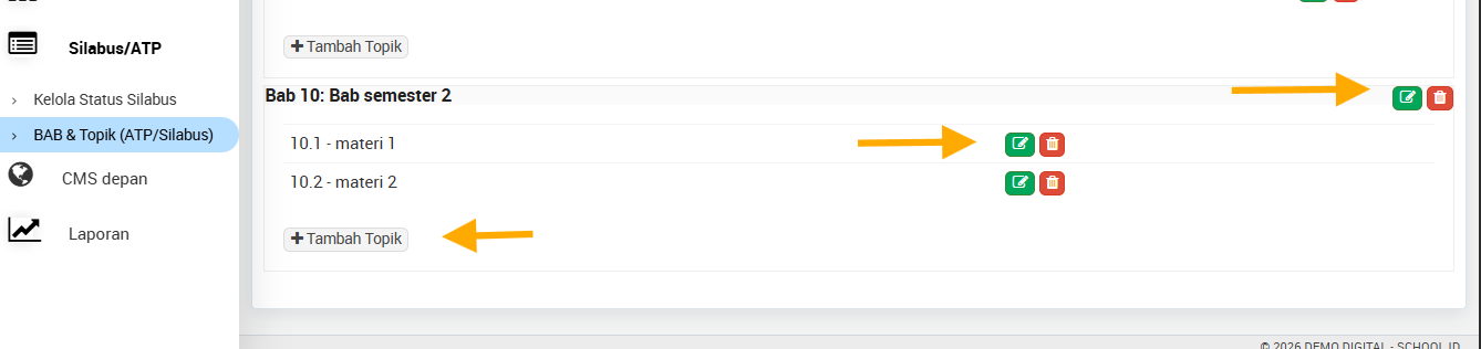 3. Setelah itu akan diarahkan kehalaman Bab & Topik(ATP/Silabus) untuk menambahkan materi