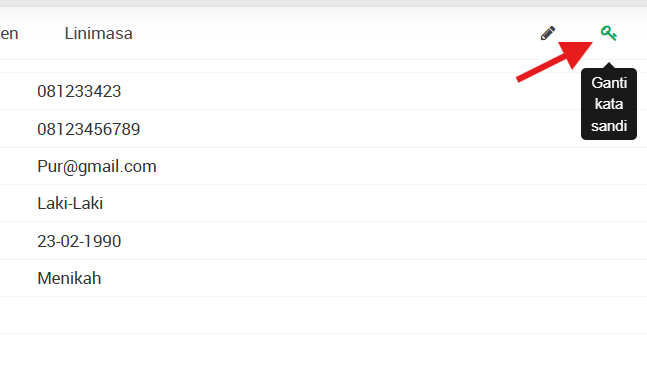 3. Klik ikon kunci pada pojok kanan atas untuk reset/ganti password seperti digambar
